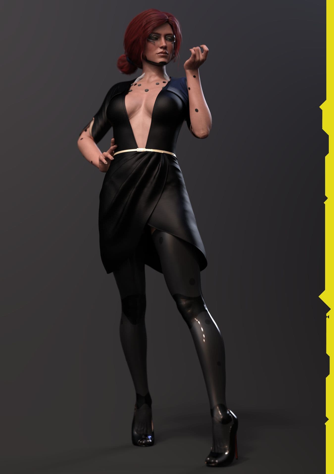 Пользователь Reddit под ником the-no-lifer представил чародеек Йеннифэр и Трисс из игр серии «Ведьмак» в образе сотрудниц корпораций будущего из мира Cyberpunk 2077. the-no-lifer изобразил Йеннифэр и Трисс в стильных чёрных платьях. У Трисс можно увидеть кибернетические ноги, а Йеннифэр вооружена пистолетом. the-no-lifer отметил, что намерен изобразить и других персонажей вселенной The Witcher в образе корпоративных работников из мира Cyberpunk 2077.