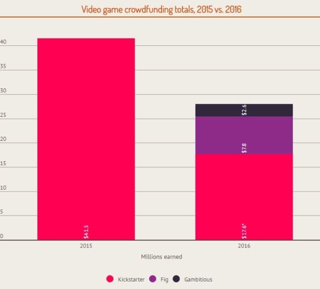 Открытие сервиса Fig нанесло сокрушительный удар по Kickstarter и убрал с платформы две крупные компании - DoubleFine и InXile. Их проекты Psychonauts 2 и Wasteland 3 собрали более $3,8 млн и $3,1 млн соответственно. Если добавить и более мелкие проекты, то сумма заработков на Fig за 2016 год составила $7,8 млн.