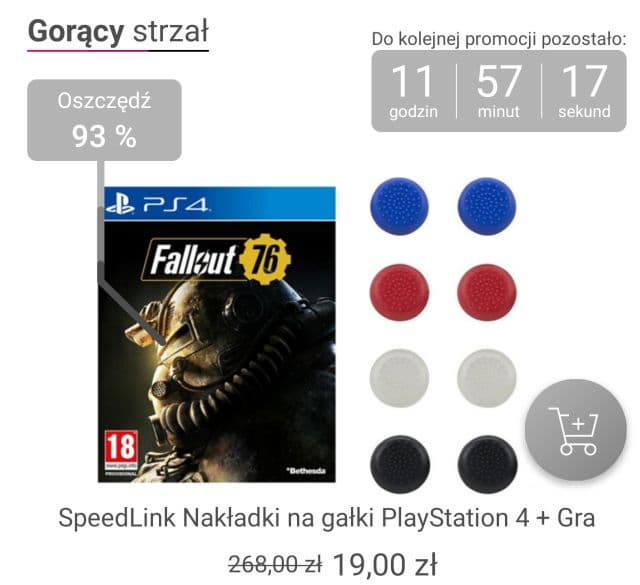 В рамках акции можно купить насадки для стиков геймпада и получить Fallout 76 в подарок. Покупка обойдётся вам в 19 польских злотых (около 5 долларов или 328,5 рублей).
