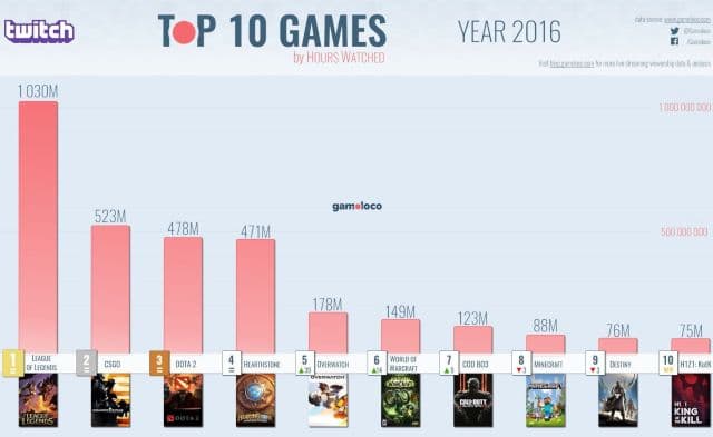 Портал GamoLoco огласил данные по самым популярным играм на Twitch. Оказалось, что самой просматриваемой игрой стала League of Legends – более 1 миллиарда часов.
