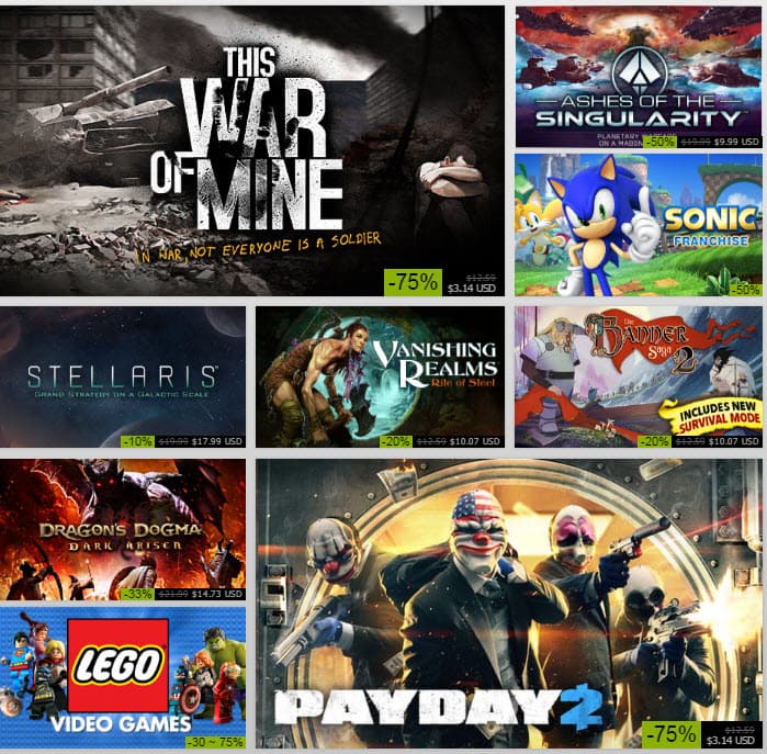 В распродаже принимают участие игры серий Assassin's Creed, Call of Duty, Arma, LEGO, Sonic, Deus Ex и проч. Новый Doom можно приобрести со скидкой 40%, скидки на XCOM: Enemy Unknown и Batman: Arkham Origins составляют 75%, на Half-Life и NBA 2K16 - 80%.