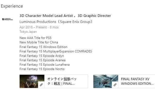Похоже, студия Luminous Productions, являющаяся одним из подразделений Square Enix, работает над проектом для следующего поколения консолей. На странице ведущего художника 3D-моделей персонажей Томохиро Токоро (Tomohiro Tokoro) в сети LinkedIn обнаружено упоминание о «новом ААА-проекте для PS5».