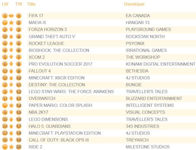 Удастся ли Gears of War 4 сместить Fifa 17 с первого места, узнаем на следующей неделе.