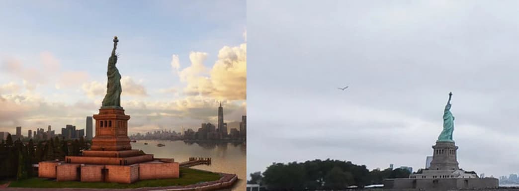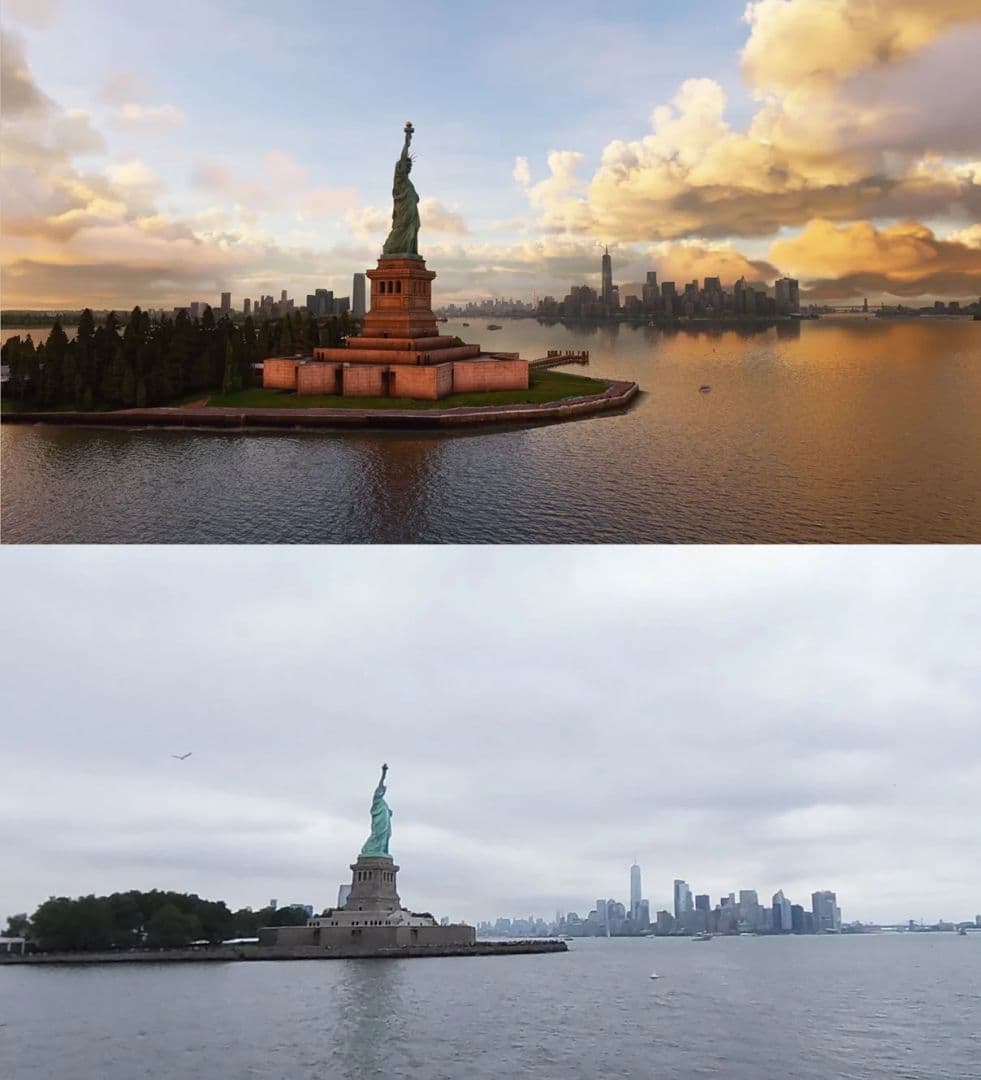 В игре поддерживается связь с серверами Azure, благодаря чему каждая область выглядит очень реалистично. Ранее в сети появлялось видео со сравнением некоторых локаций. На этот раз можно сравнить цифровые и реальные версии вулкана Нгаурухоэ из Новой Зеландии, город Аяччо с Корсики, Люцерн из Швейцарии (озеро четырех кантонов) и Статую Свободы.