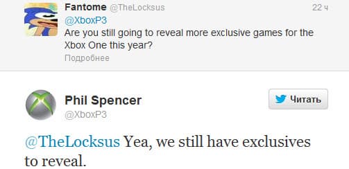 Похоже, что Microsoft не собирается отставать в этом плане от конкурента. По крайней мере, на это намекает вице-президент Microsoft Studios Фил Спенсер (Phil Spencer) , который утвердительно ответил на вопрос одного из поклонников, стоит ли нам ждать новых анонсов для Xbox One в этом году.
