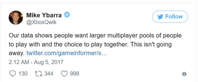 «Согласно нашим данным, пользователи хотят более широкую подборку игроков в мультиплеере, чтобы с ними можно было играть, и возможность играть вместе. Это всерьёз и надолго», - написал Майк Ибарра в твиттере.