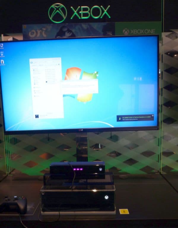 В Сети появились фотографии стенда Xbox One, на котором желающие могли поиграть в демонстрационную версию двухмерного паззл/платформера Ori & the Blind Forest. Когда один из посетителей выставки решил опробовать ее, игра вывалилась на рабочий стол Windows 7. Примечательно то, что в данном РС установлена видеокарта от NVIDIA, тогда как в Xbox One (и PS4) использованы решения от AMD.
