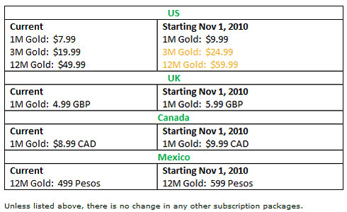 Данную информацию продублировал Major Nelson, который также сообщил о том, что до 31 октября 2010 будет действовать акция, по которой жители США могут оформить годовую подписку за $39,99.