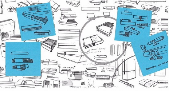 Команда из 30 человек начала с экскизов, после чего они начали создавать пластиковые корпусы, которые они брали домой и смотрели, как они будут выглядеть в интерьере. Далее велись переговоры с командой инженеров, которые старались разместить все внутренние элементы в различных корпусах.