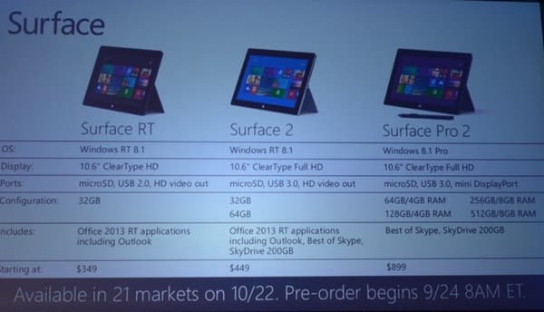 Предзаказы на Surface Pro 2 открываются сегодня, в продажу планшет поступит 22 октября.