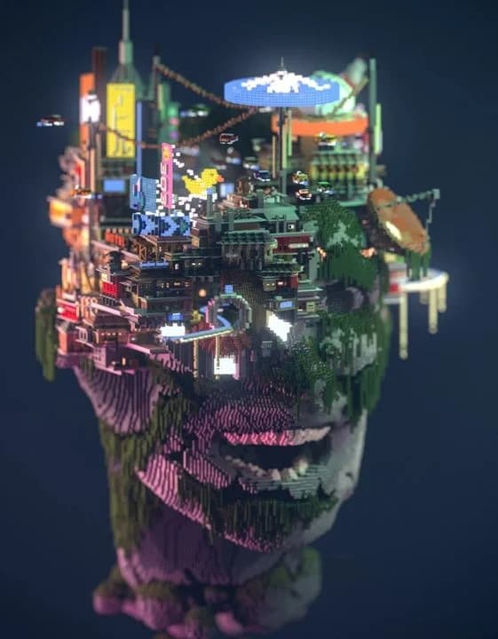 Игрок построил город и расположил его на голове… гиганта. Место, которое автор назвал Dystopian Mindset, выглядит впечатляюще, и напоминает нечто взятое из комиксов или мультфильмов. Создатель необычного города также полностью перенес его в программу рендеринга трехмерной графики Blender. Как выглядит эта красота можно увидеть на скриншотах.