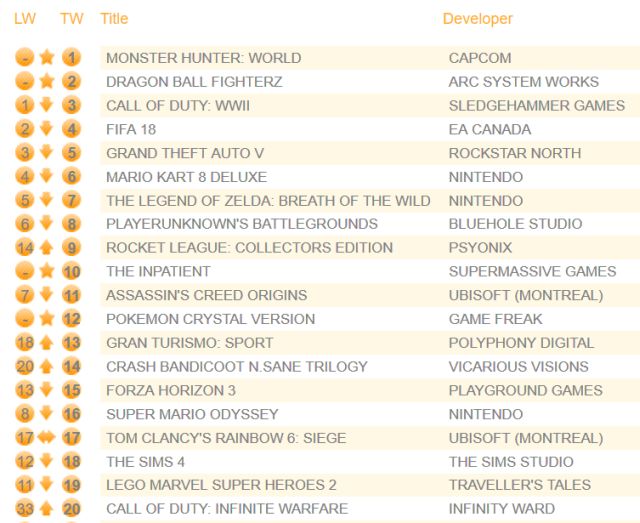 Шутер Duty: WWII опустился с первого на третье место чарта. Со второго на четвёртое место опустился футбольный симулятор FIFA 18.