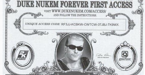 Еще в октябре прошлого компания 2K Games официально сообщила о том, что члены Duke Nukem Forever First Access Club получат ранний доступ к демонстрационной версии и «набор приятных дополнений».