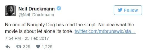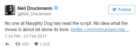 Писатель игры Uncharted Нил Дракманн в ответе на вопрос одного из читателей в твиттер, сказал, что никто из разработчиков не читал сценарий грядущего фильма.
