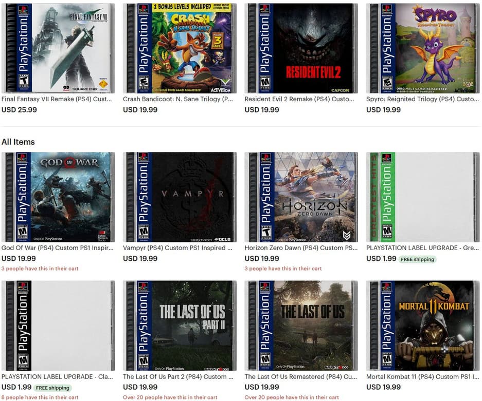Энтузиаст под ником byllogan продаёт в сервисе Etsy коробки для игр для PS4, выполненные в стиле коробок для проектов для PlayStation One. Коробки выглядят прямо как знаменитые коробки для дисков времён оригинальной PlayStation и включают в себя стильную обложку.