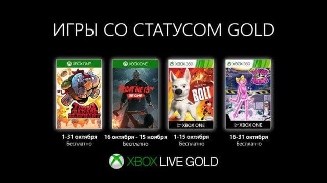 Компания Microsoft опубликовала список игр, которые будут доступны бесплатно в октябре этого года подписчикам сервиса Xbox Live Gold.