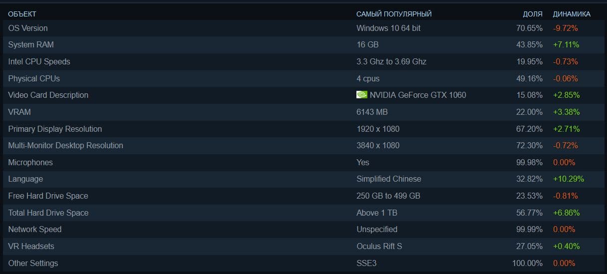 Компания Valve опубликовала информацию о том, какие комплектующие установлены в компьютерах пользователей сервиса Steam по состоянию на март этого года. Эти сведения формируются на основании результатов добровольного опроса среди пользователей Steam.