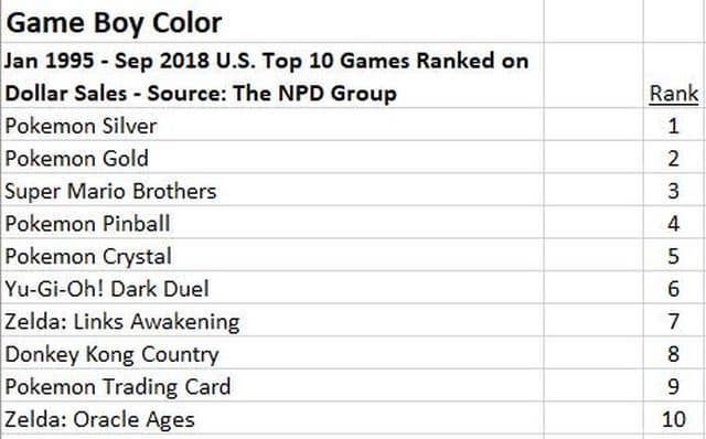 Самые продаваемые игры на Game Boy Color: