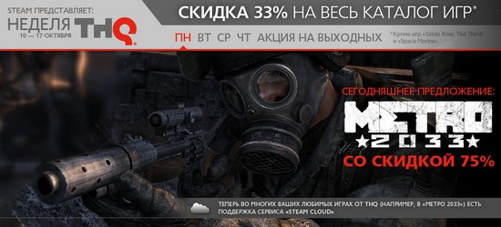 Компании Valve и THQ официально сообщили о том, что с 10 по 17 октября этого года в Steam можно будет приобрести различные игры и дополнения от данного издательства по привлекательным ценам.