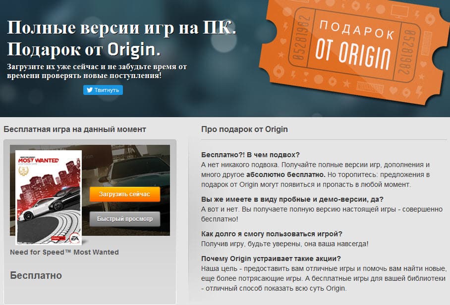 Need for Speed: Most Wanted стала новой игрой в разделе «Подарок от Origin», а это означает, что вы можете получить игру совершенно бесплатно. Чтобы получить игру, войдите в Origin и загрузите ее со страницы «Подарок от Origin» в свою библиотеку «Мои игры».