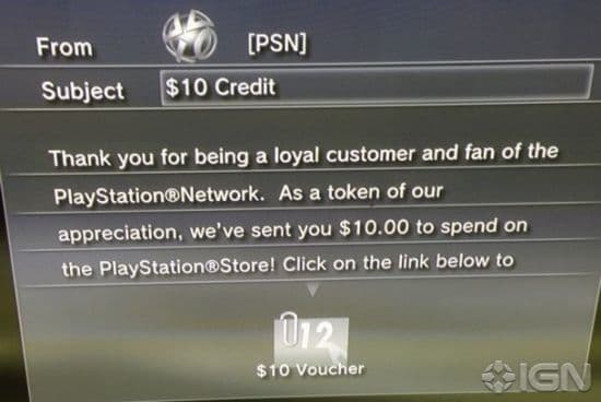 Как сообщает IGN, некоторые пользователи PlayStation Network получают приятные сообщения от Sony с информацией о том, что в качестве благодарности за их активность они вознаграждаются 10 долларами, которые можно потратить в PS Store.