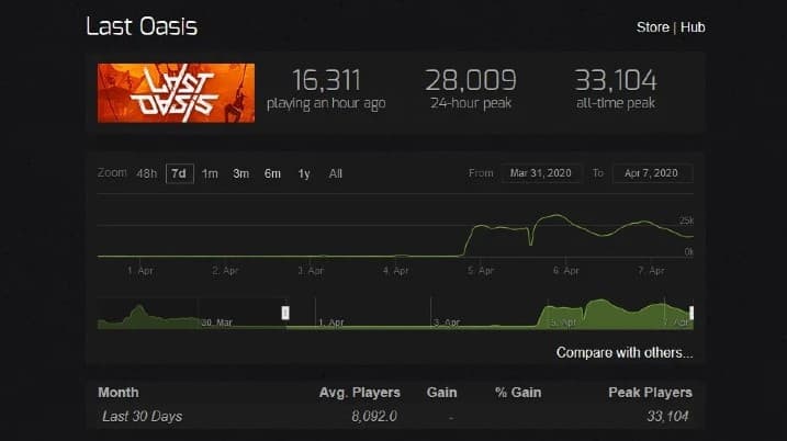 Ранний доступ к многопользовательской ролевой игре Last Oasis от Donkey Crew начался 26 марта 2020 года.