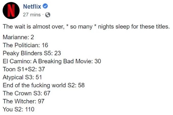 В официальном твиттере голладского Netflix была размещена запись о том, сколько ночей зрителям ждать до самых значимых премьер 2019 года. Как вы, вероятно, догадались, сообщены подробности и о сериале «Ведьмак». Запись быстро удалили, но из интернета ничего не исчезает бесследно. С оригиналом твита знакомимся ниже.