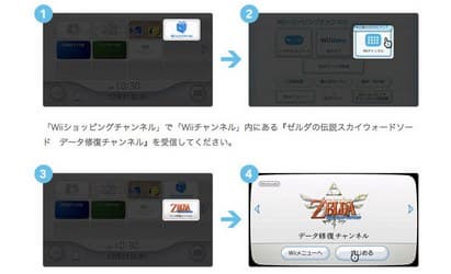Вместо того, чтобы выпустить обычный патч, к которым привыкли пользователи РС, PS3 и Xbox 360, Nintendo запустила отдельный Wii Channel под названием Zelda Data Restoration Channel, зайдя который и следуя указаниям, пользователи вносят в файл сохранений необходимые изменения.