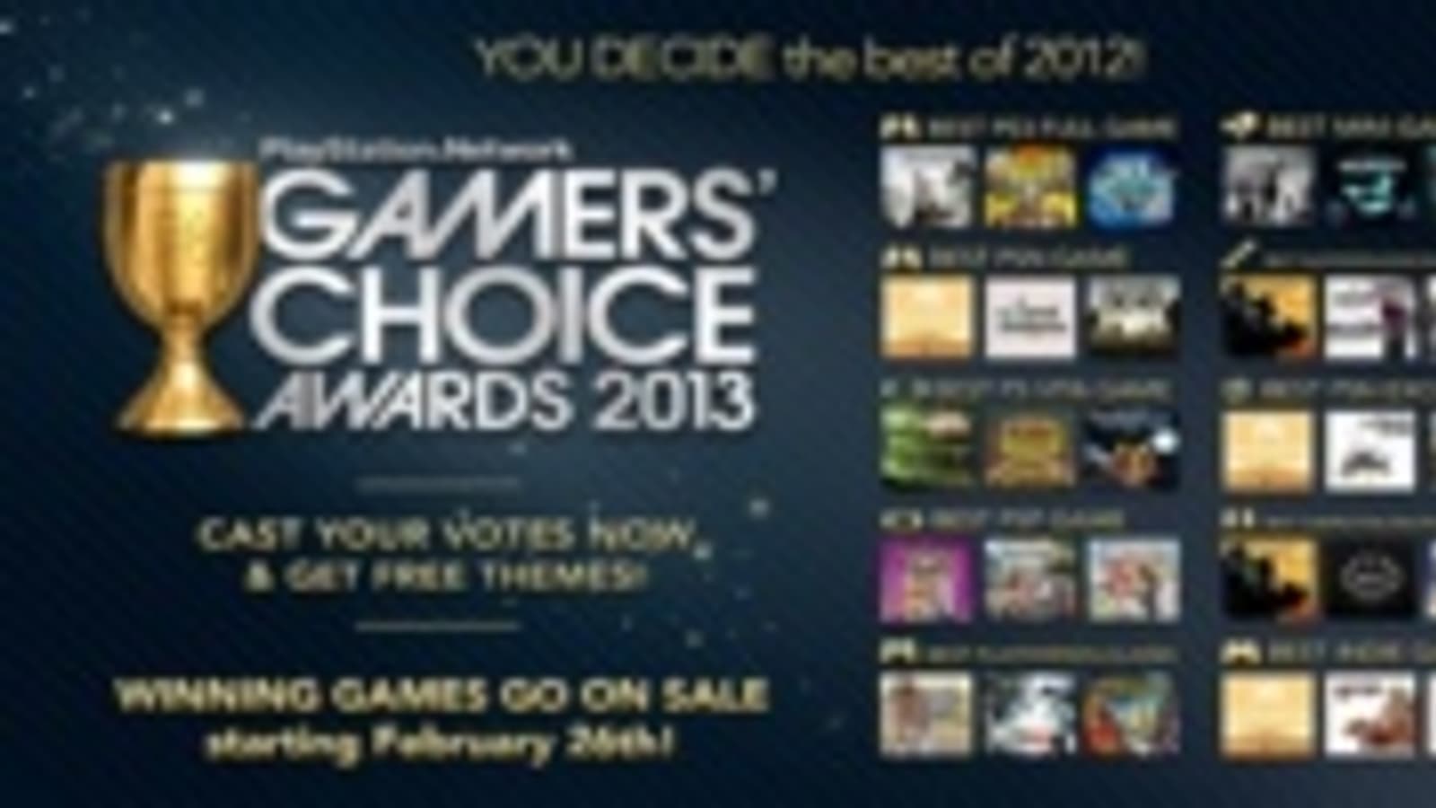 Компания Sony официально сообщила названия номинантов PlayStation Network Gamers' Choice Awards - уже третьего по счету ежегодного голосования, в ходе которого сами пользователи определяют лучшие игры сервиса PSN.
