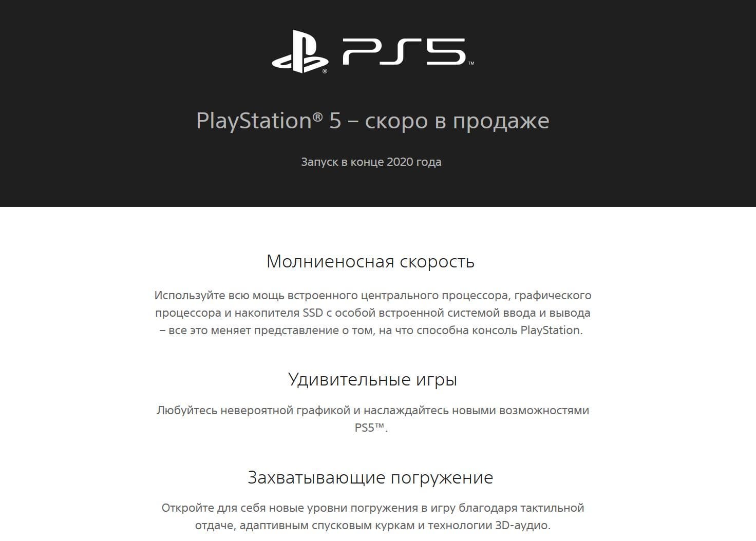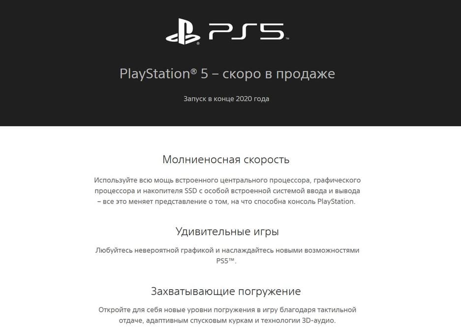 Компания Sony обновила сайт, посвящённый PlayStation 5. Внимательные пользователи вскоре обнаружили, что в новой версии сайта нет упоминания о запуске PlayStation 5 в конце этого года. Ранее на сайте PlayStation, включая русскую версию, в описании PS5 была фраза «Запуск в конце 2020 года». Теперь такой фразы нет.