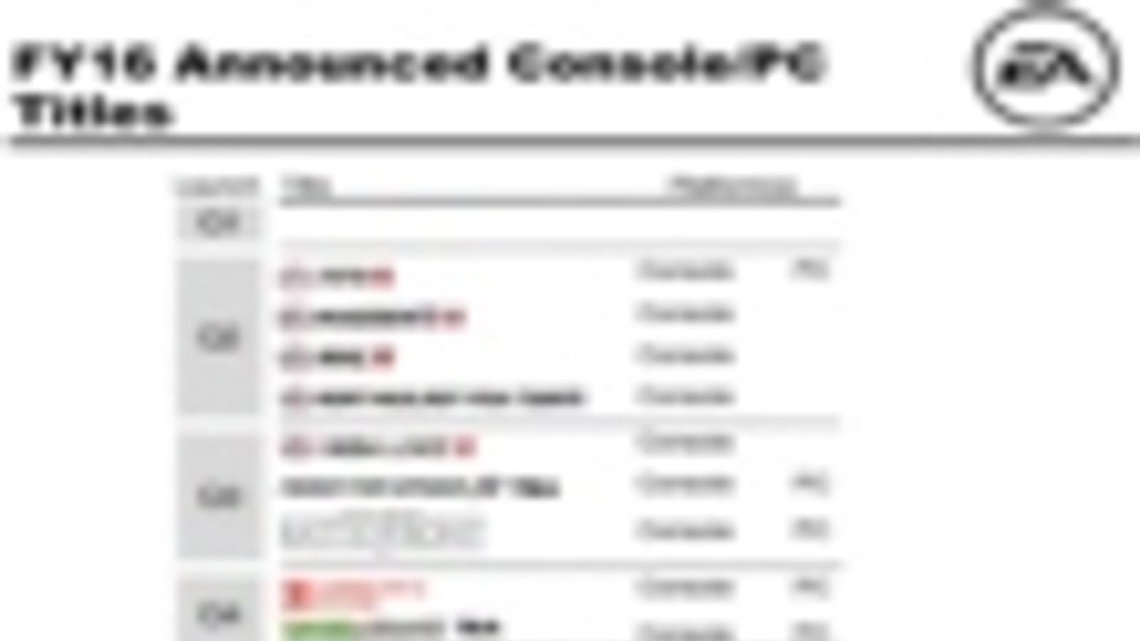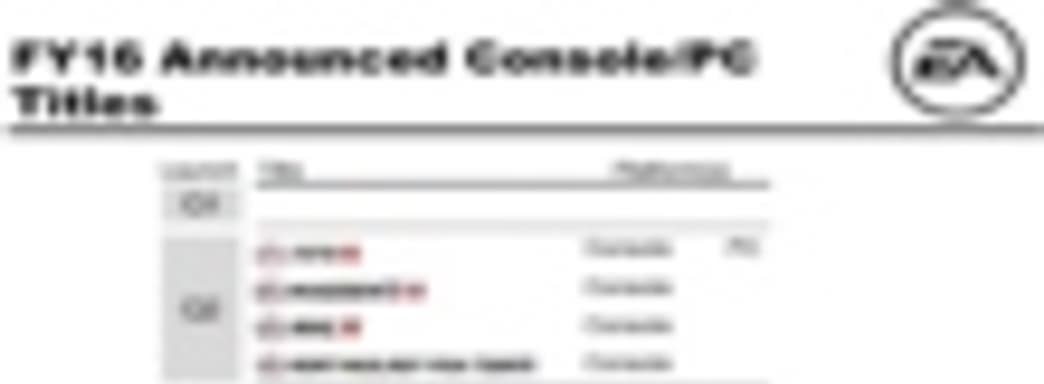 В свежем отчете о работе издательства Electronic Arts представлен данный слайд, демонстрирующий игры, которые должны поступить в продажу до конца текущего финансового года.