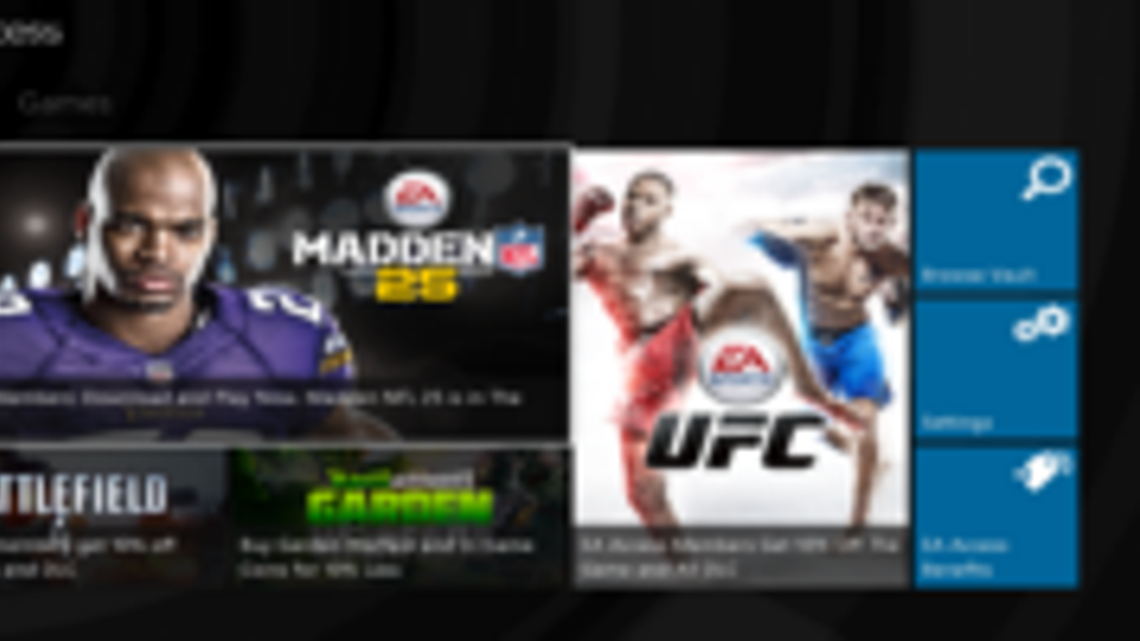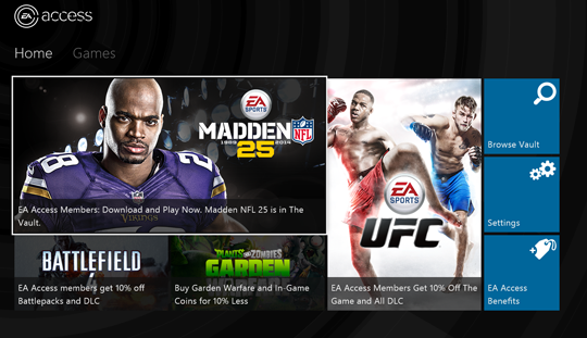Подписчики EA Access будет иметь постоянный доступ к различным играм ЕА для Xbox One, бета-тестерам доступны FIFA 14, Madden NFL 25, Peggle 2 и Battlefield 4, однако в итоге в сервисе будет представлено значительно больше игр.