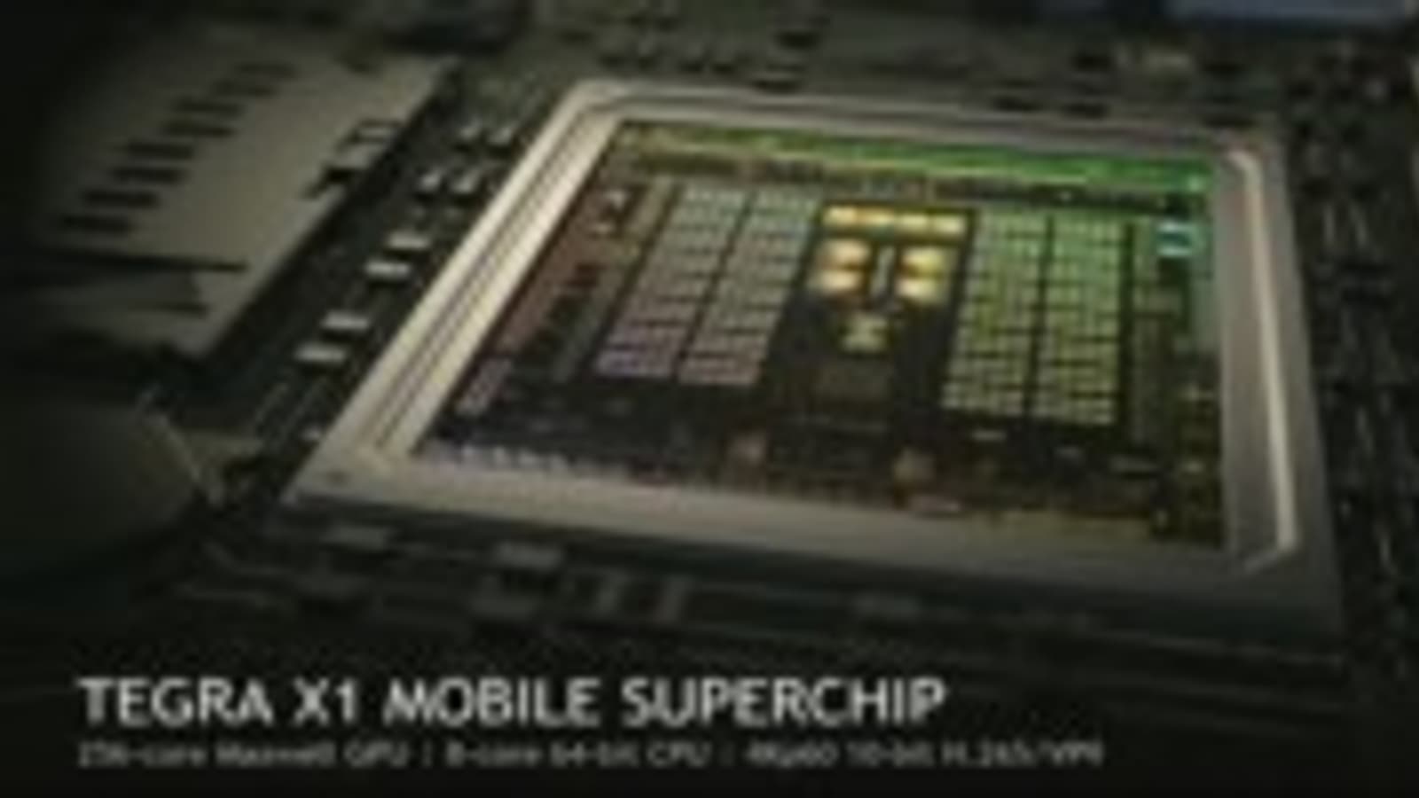 Tegra X1 использует архитектуру Maxwell и изготавливается с использованием 20-нм технологического процесса, чип включает 256 ядер CUDA и восемь процессорных ядер (4x ARM Cortex A57 + 4x ARM Cortex A53). Tegra X1 способен воспроизводить видео в разрешении 4К при 60 кадрах в секунду, а также обрабатывать сложнейшие трехмерные сцены.
