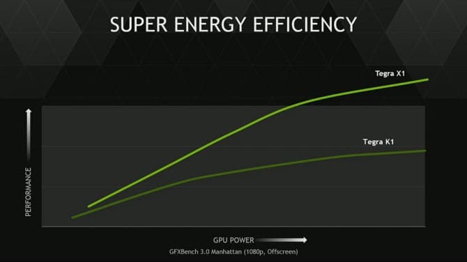 Далее представлены графики, демонстрирующие преимущество Tegra X1 перед другими мобильными чипами.