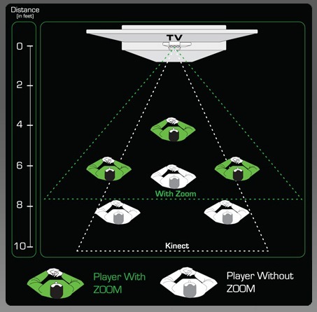 Производитель утверждает, что это незаменимый аксессуар для тех, кто использует Kinect в маленькой комнате, ведь он позволяет уменьшить минимальное расстояние от камеры до игрока примерно на 40%. Более того, Zoom позволит Kinect распознавать движения двух игроков в помещении, где без аксессуара сенсор видит только одного игрока.