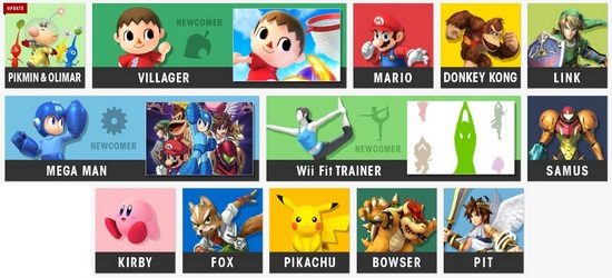 Таким образом, список персонажей Super Smash Bros. на данный момент выглядит так: