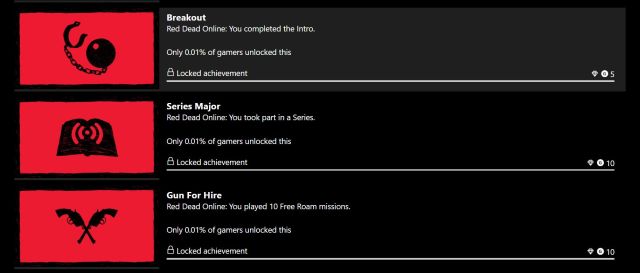 Об этом говорит страница достижений Xbox One, связанных с Red Dead Online - 0.01% игроков получили многопользовательские достижения: Breakout, Series Major, Gun For Hire и ряд других.