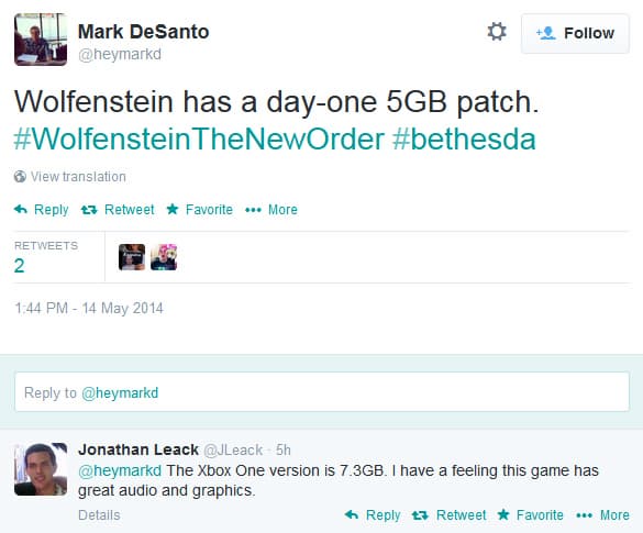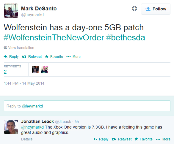 Как стало известно, размер стартового обновления для PS4-версии Wolfenstein: The New Order составляет 5 ГБ, а для Xbox One-издания и того больше - 7,3 ГБ. При этом размер версий игры для PS4 и Xbox One 47 ГБ.