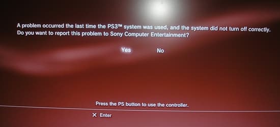 Если ваша PS3 зависнет и вам придется отключить ее принудительно (не при помощи джойстика и функции Turn off system), то при включении вы увидите подобное сообщение с предложение отослать отчет об ошибке в Sony.
