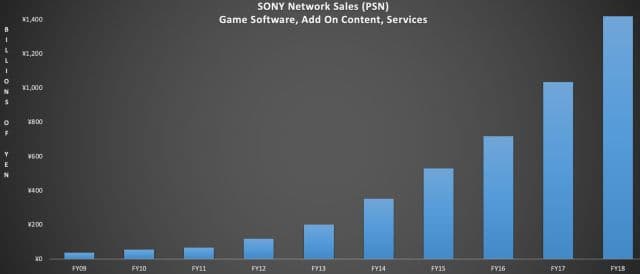 Сервис PlayStation Network принёс Sony 12,8 миллиардов долларов. Сюда входят продажи полных версий игр, дополнительного контента, оплата подписок на PS+ и PS Now. Причём выручка этого сегмента стабильно растёт. Сервис PS Now уже насчитывает 700 тысяч пользователей.