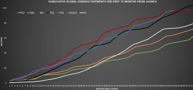 Также Даниэль Ахмад опубликовал график с динамикой поставок консолей за 72 месяца пребывания на рынке и отметил, что PS4 может достичь отметки в 100 миллионов отгруженных устройств быстрее, чем Wii, и приметно также быстро, как и PS2.