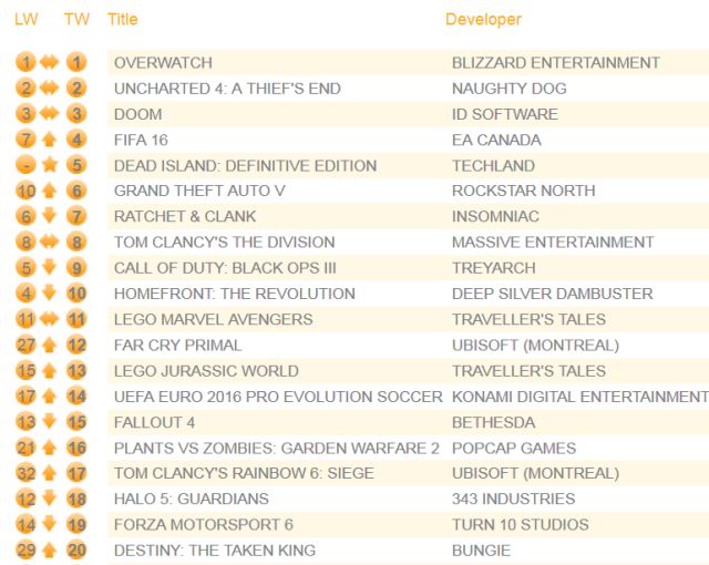 Компания Chart-track опубликовала свежие данные о продажах видеоигр на территории Соединённого королевства. На первой строчке вновь обосновался командный сетевой боевик Overwatch за авторством Blizzard Entertainment.