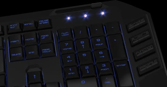 Мультимедийные клавиши совмещены с функциональными. Кнопка Win блокируется включением Play Mode с помощью клавиши справа. Кроме того, Blade умеет распознавать одновременные нажатия (anti-ghosting function).
