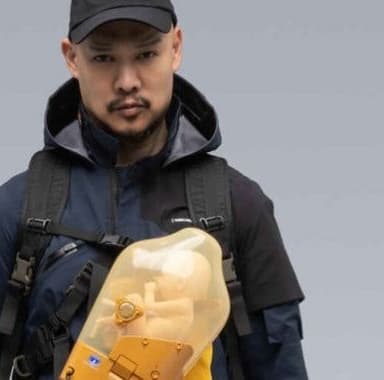 Kojima Productions совместно с компаний Acronym, специализирующейся на производстве технической одежде, разработали специализированный продукт. За основу реального воплощения виртуальной куртки взят дизайн, использовавшийся в Death Stranding главным героем Сэмом Бриджесом. Основное внимание уделяется не красоте, а комфорту и удобству использования, к примеру, на верхнюю одежду можно навешивать различные предметы, она защищает от потери тепла и может использоваться круглый год. Дизайнеры освежили известную куртку J1A-GT, которая получила дополнительный желтый карман на груди, а также добавили несколько логотипов «Bridges».
