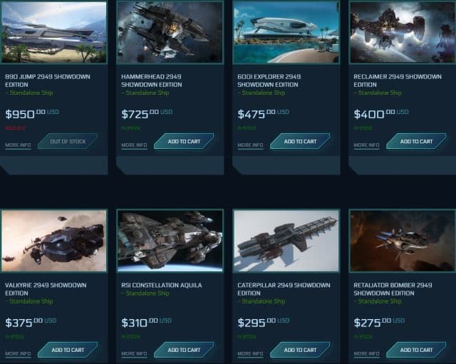 Студия Cloud Imperium Games знает, как собирать деньги с фанатов. После недавнего обновления (Plegde Stores), разработчики выставили на продажу космические корабли и наиболее интересный экземпляр с ограниченным количеством был реализован очень быстро. Буквально за несколько секунд ушли самые дорогие лайнеры 890 Jump Showdown Edition, оцененные в $950. Их можно мгновенно опробовать в игре после покупки.