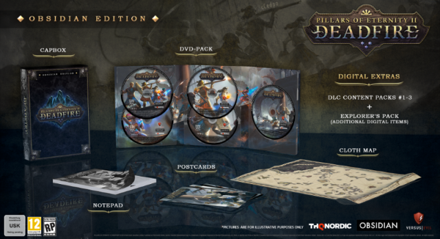 Физическая версия издания Obsidian включает тематический блокнот, открытки и карту из ткани.