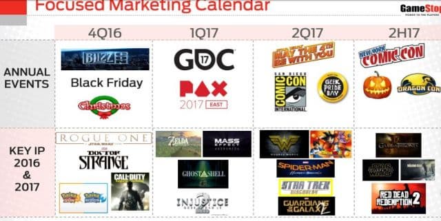 Крупная торговая сеть GameStop опубликовала список наиболее ожидаемых релизов игр и фильмов на 2017 год. Интересно то, что на представленной ниже таблице указана и ориентировочная дата выхода The Legend of Zelda: Breath of the Wild – первый квартал 2017 года. Там же можно увидеть Mass Effect: Andromeda и файтинг Injustice 2, который, согласно официальным сведениям, ожидается в 2017 году.