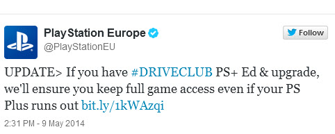 Сегодня же Sony подтвердила, что те игроки, которые начнут играть в DriveClub PS Plus Edition, а затем решат совершить апгрейд до полного издания, заплатив $44,99, сохранят полную версию игры, даже если подписка PS Plus завершится и не будет продлена.