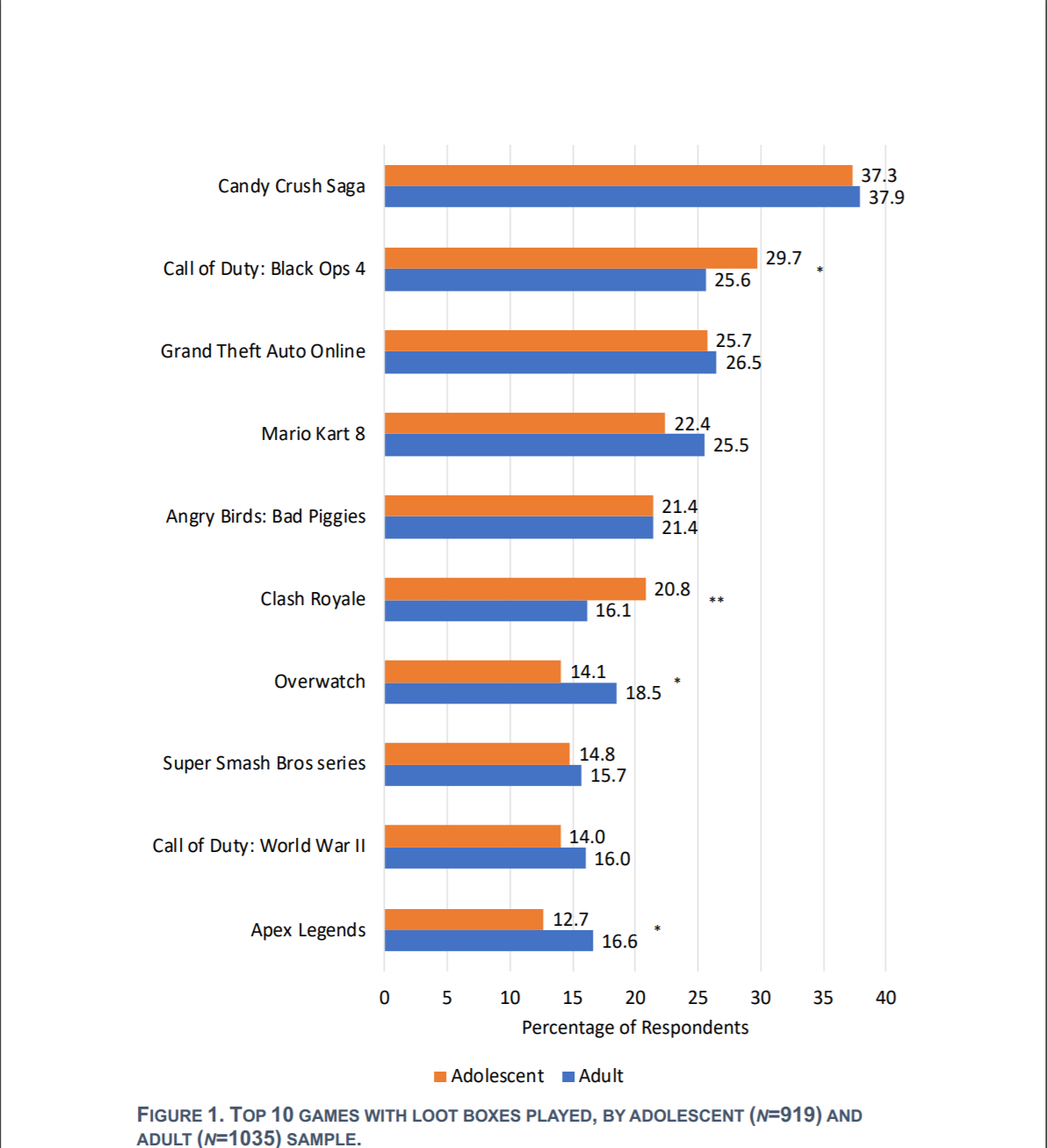 В исследовании, подготовленном для государственного фонда было проанализировано поведение около 2000 человек в возрасте от 12 до 24 лет, проживающих в Новом Южном Уэльсе.данная группа людей была собрана из геймеров и обычных любителей азартных игр. Из опрошенных 22,3% признались что испытывали проблемы с зависимостью.