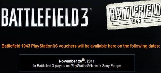 Сегодня ЕА заявила, что в данной ситуации произошло определенное недоразумение и все покупатели PS3-версии Battlefield 3 получат Battlefield 1943. 26 ноября европейские игроки смогут получить свой код на загрузку игры на сайте 1943redemption.battlefield.com. Подробности о том, как получить код и скачать игру, можно найти здесь.